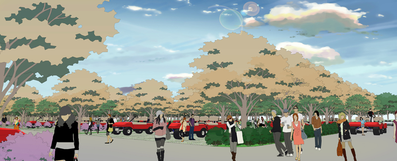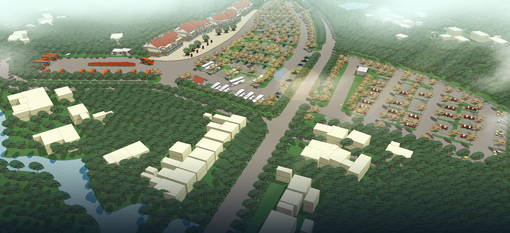 建筑設(shè)計(jì)主要采用簡(jiǎn)歐風(fēng)格,遵循“尊重自然、綠色生態(tài)、建筑風(fēng)貌、景觀營(yíng)造、可持續(xù)發(fā)展、低碳環(huán)保”的原則,布置在景區(qū)主干道右側(cè)和左側(cè)部分地塊,主要滿足大巴、中巴、小車、電瓶車以及回遷居民住宅。規(guī)劃區(qū)停車場(chǎng)設(shè)有四個(gè)車行主要出入口,其中兩個(gè)主要滿足停車場(chǎng)內(nèi)部車輛進(jìn)出,一個(gè)滿足電瓶車出入停車場(chǎng),一個(gè)滿足回遷建筑出入。建筑前廣場(chǎng)主要考慮人流集散,后庭院主要突出景觀營(yíng)造,通過對(duì)商業(yè)零售、回遷居住、景區(qū)服務(wù)、汽車維修等配套商業(yè)設(shè)施的建設(shè)滿足游客游覽需求。