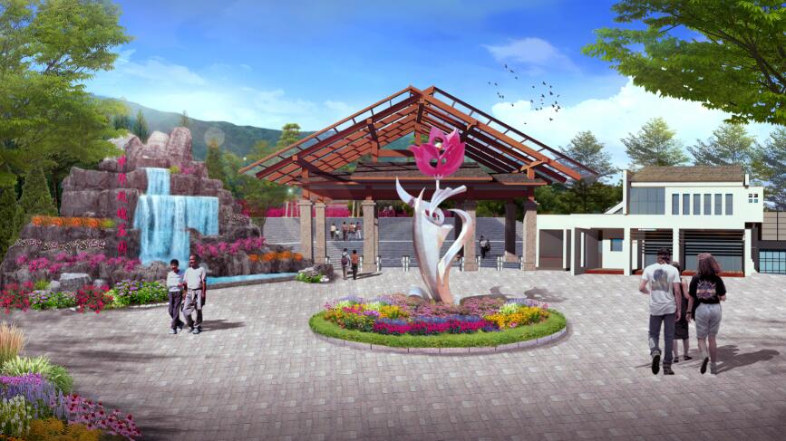 通過對入口軸線上的商業建筑、樂園設施和景觀設計,加入蘊含田園元素的雕塑小品,豐富感官體驗。圍繞對主軸線的項目布局,打造出浪漫唯美的景觀環境,依次將民宿度假、仙子樂園、荷蘭商街、十里玫園、百花園、樂玩果園、生態果園等串聯起來。通過以玫瑰塔為中心,周邊種植世界著名的玫瑰品種,園內設有特色景觀和小品打造出浪漫的景觀節點。