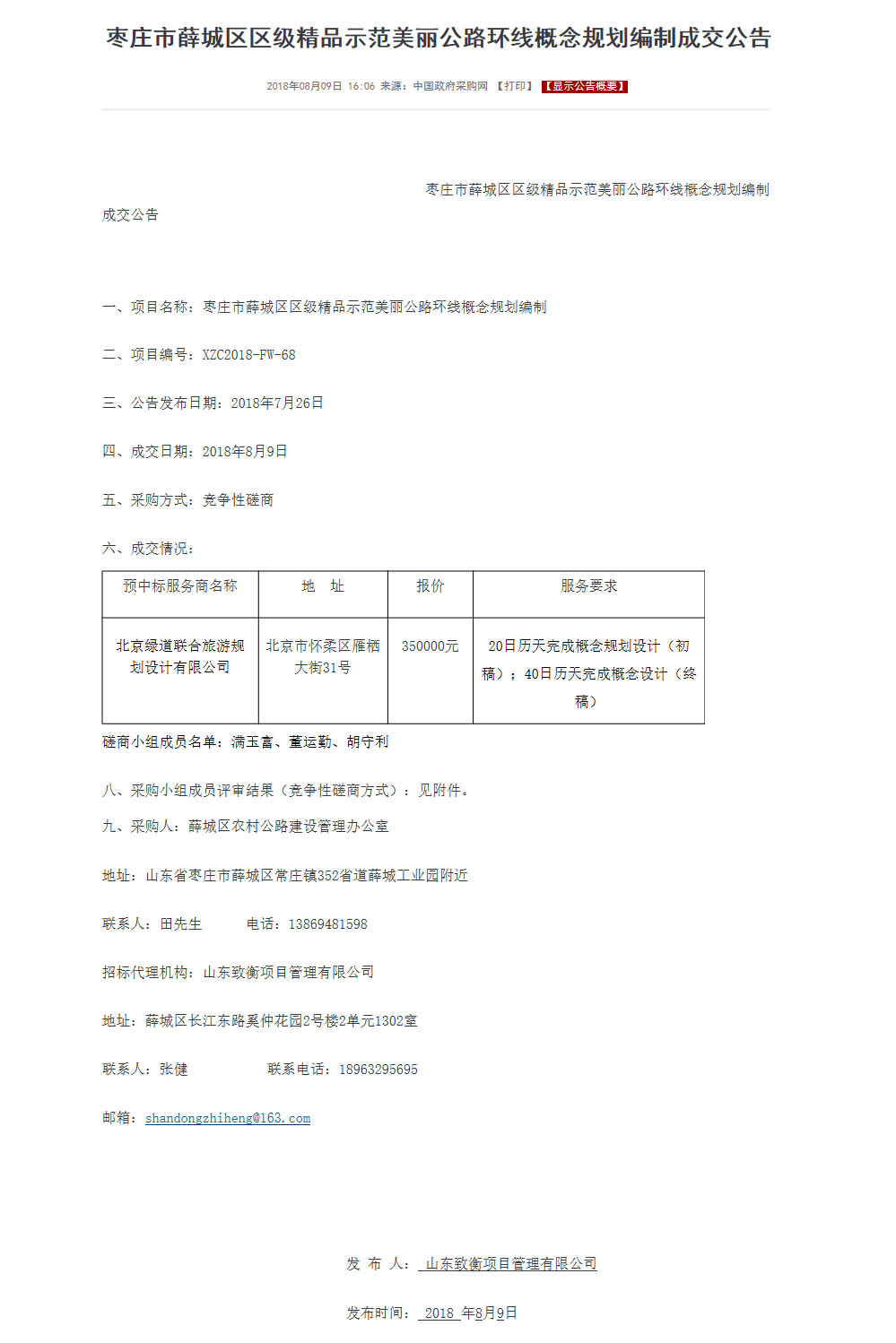 北京綠道聯(lián)合旅游規(guī)劃公司成功中標(biāo)《棗莊市薛城區(qū)區(qū)級(jí)精品示范美麗公路環(huán)線概念規(guī)劃項(xiàng)目》
