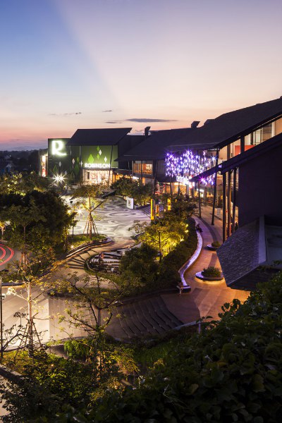 由Chanon Wangkachonkiat事務(wù)所設(shè)計(jì),購(gòu)物廣場(chǎng)為顧客提供了一個(gè)共享活動(dòng)空間,設(shè)計(jì)理念來自于周邊山區(qū)等高線地形,一些高差錯(cuò)落的臺(tái)地、路面圖案、形狀起伏的花冢、臺(tái)階、座椅及水系,將整個(gè)環(huán)境營(yíng)造出自然、生態(tài)的共享活動(dòng)空間。