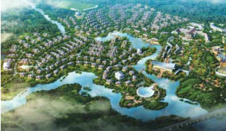 面對“如何處理度假板塊與旅游休閑板塊關系”以及“如何打造現有水系,形成’大水’的空間格局”兩大現實問題,提出了“一水一道兩滲透三組團”的解決策略。通過對主干道的景觀打造,形成三島的主要空間軸線,由東向西依次將文化旅游組團、商務會所組團、休閑度假組團三大空間組團相串聯,與周圍田、水自然環境等有機滲透,營造九州島人間仙境般的空間環境。
